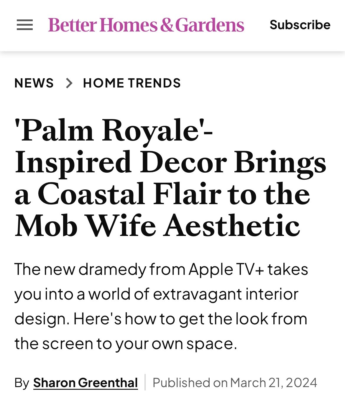 Better Homes & Gardens Mar 21 Written By Ellen Reede https://www.bhg.com/palm-royale-design-8603729 Ellen Reede